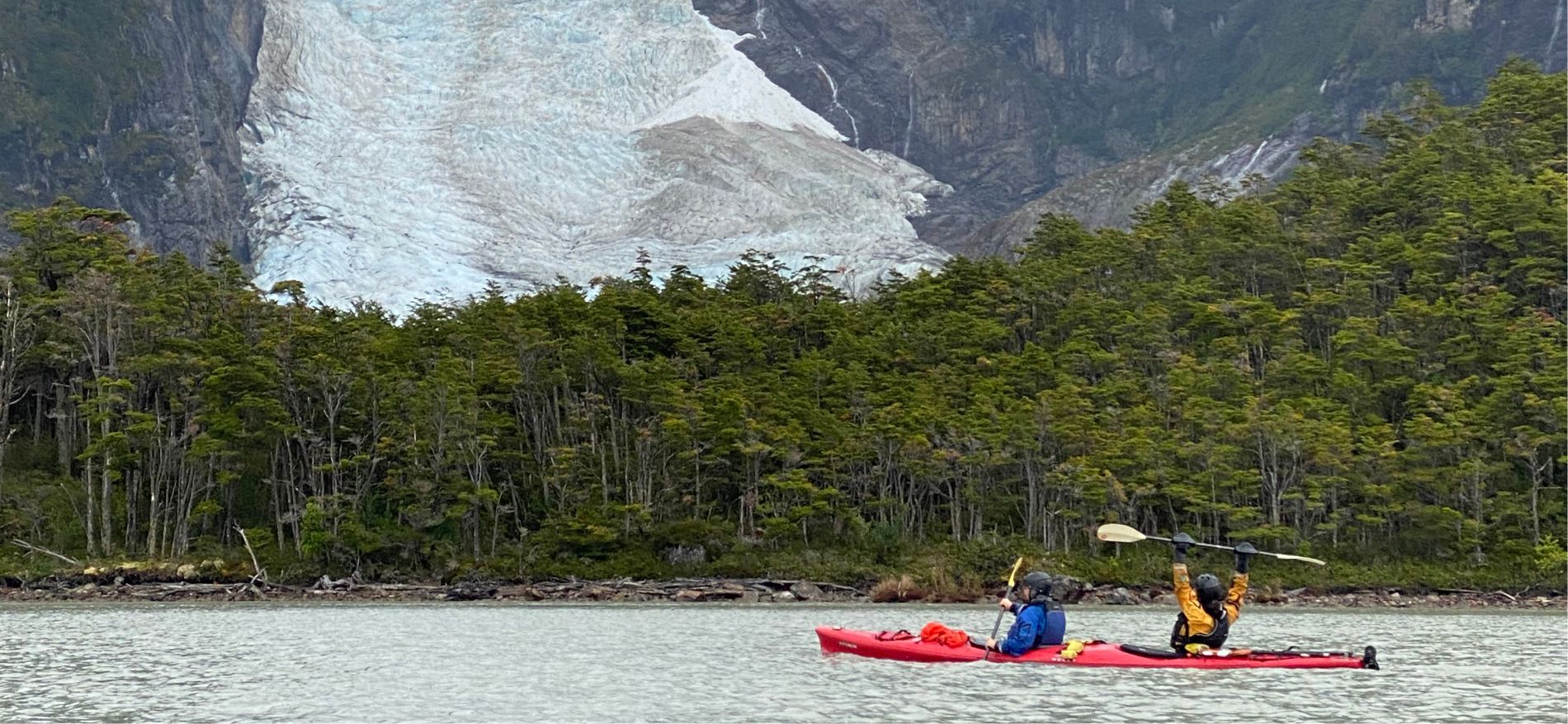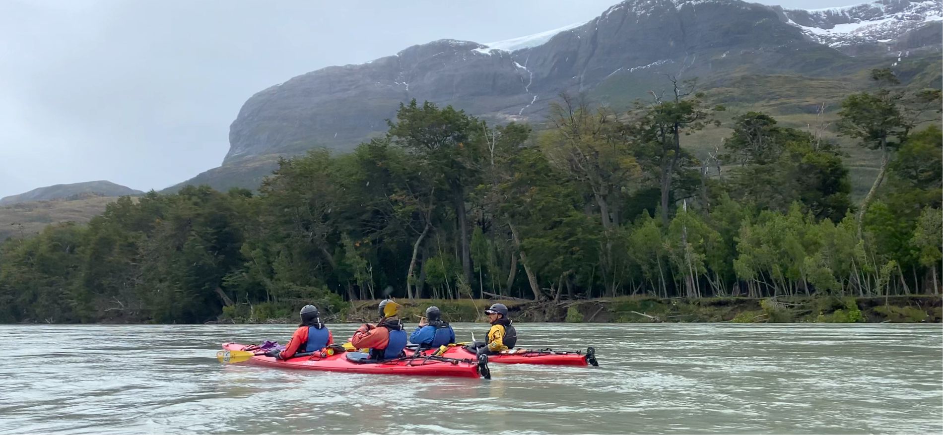 Esta navegación en kayak por el río serrano es un ecxcelente opción para visitar el Parque Nacional Bernardo O´Higgins comenzando desde el parque Torres del Paine.